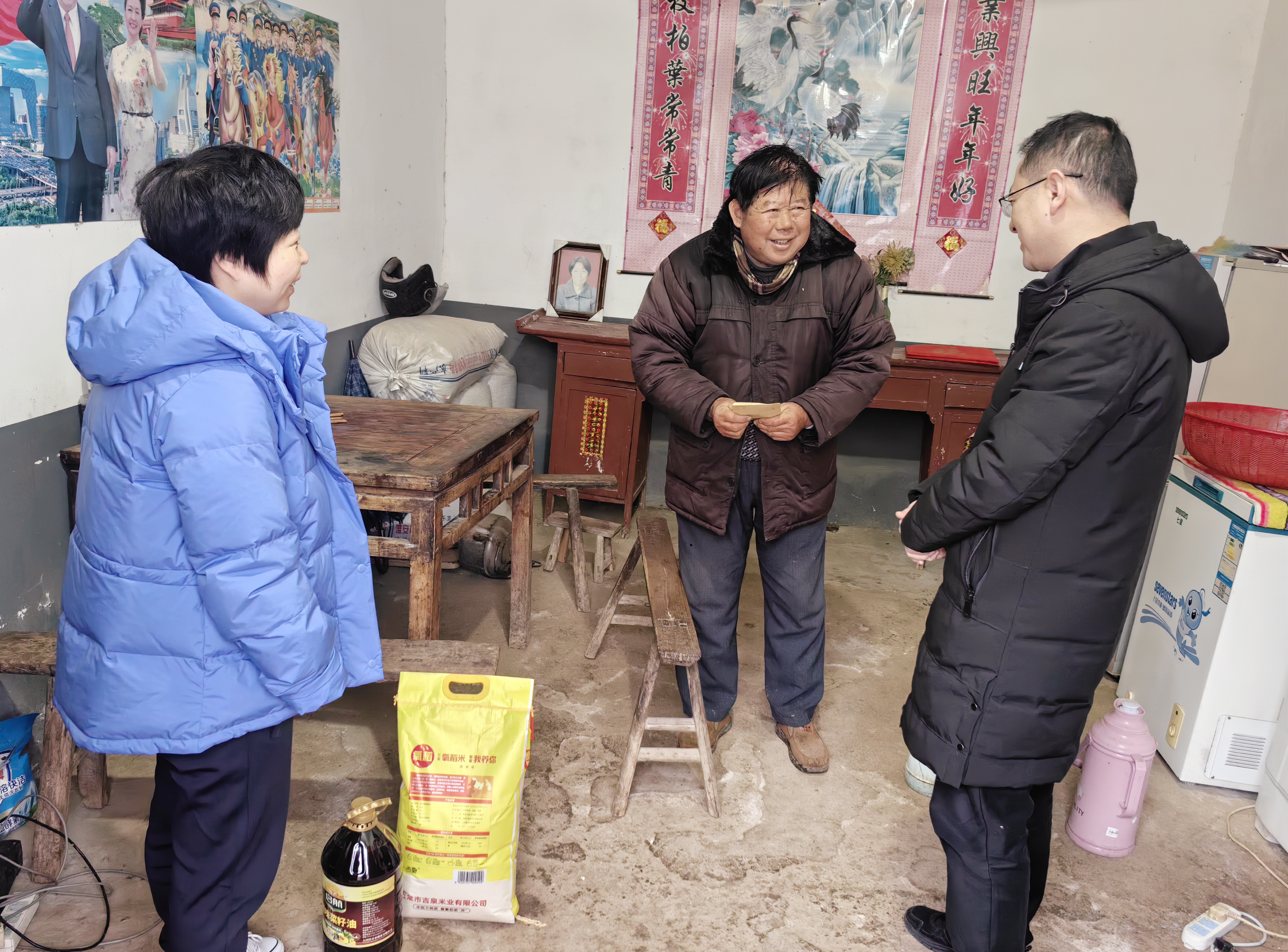 在孤寡老人陸金陳家中,張健詳細了解老人的身體、生活情況以及孫子的上學情況,還存在哪些實際困難,并送上節(jié)日慰問品,鼓勵他堅定信心,積極樂觀地面對生活中的困難,在政策幫扶下迎難而上,把日子越過越好。