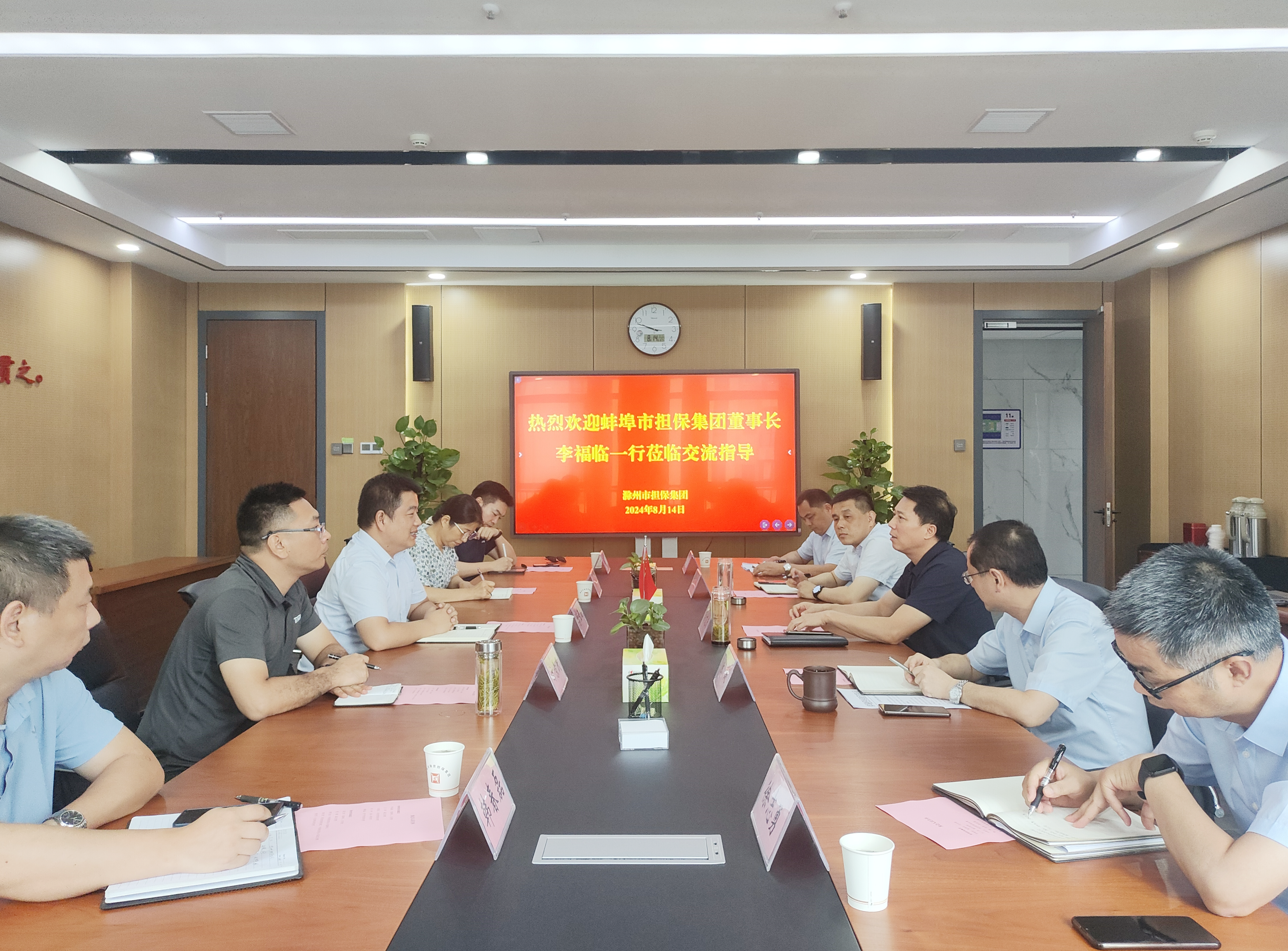 8月14日上午,蚌埠市擔保集團董事長、總經理李福臨一行到訪集團交流座談,集團董事長、總經理高文進,部分班子成員及相關部室負責人參加座談。