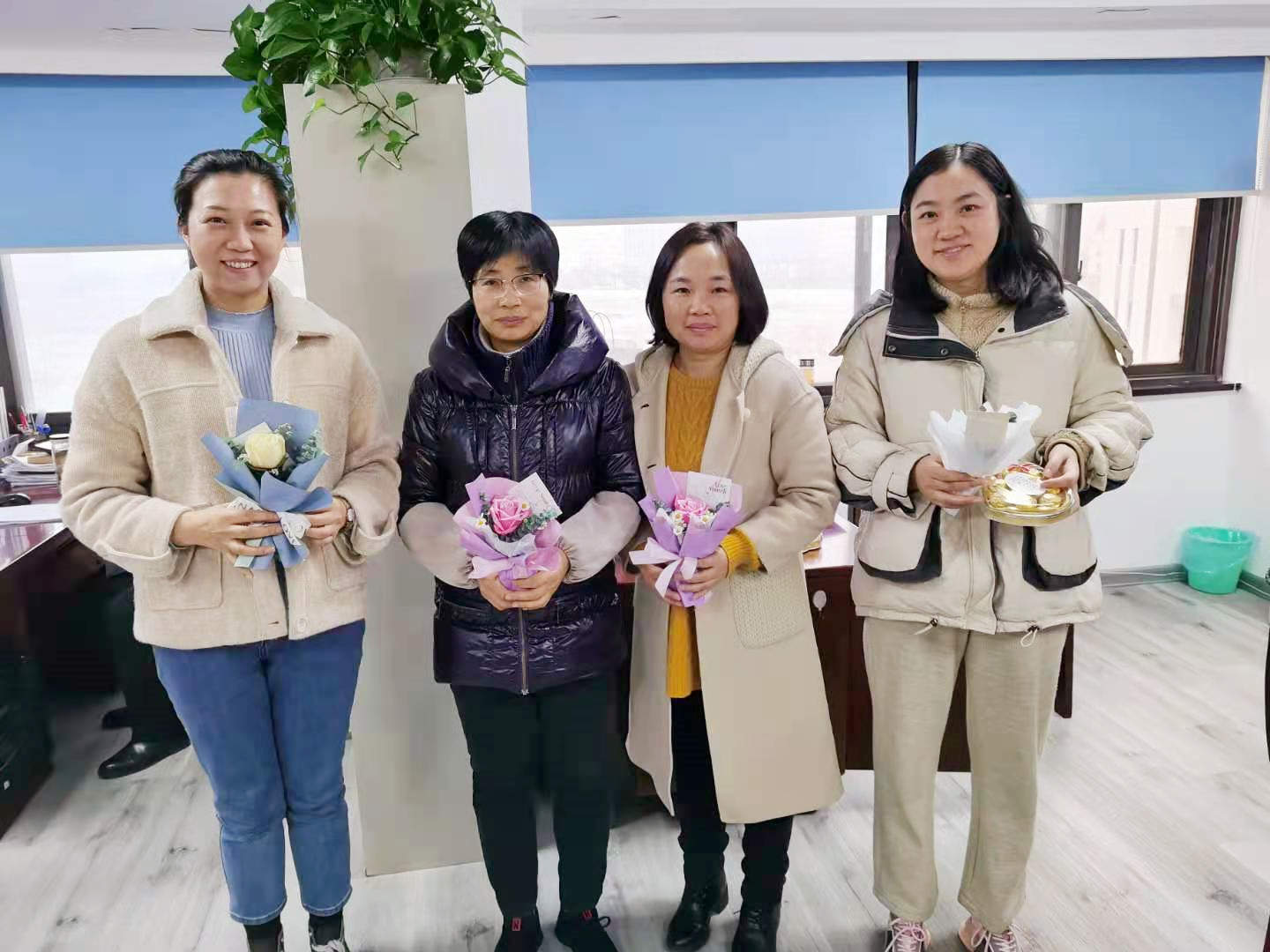 3月8日,早晨一上班,在工會(huì)的組織安排下,公司領(lǐng)導(dǎo)前往每個(gè)部門,親手將一束精心包裝的鮮花、一盒精美巧克力、一張印有溫馨祝福語(yǔ)的卡片,送給每一位女職工,祝她們節(jié)日快樂,工作順利,家庭幸福。