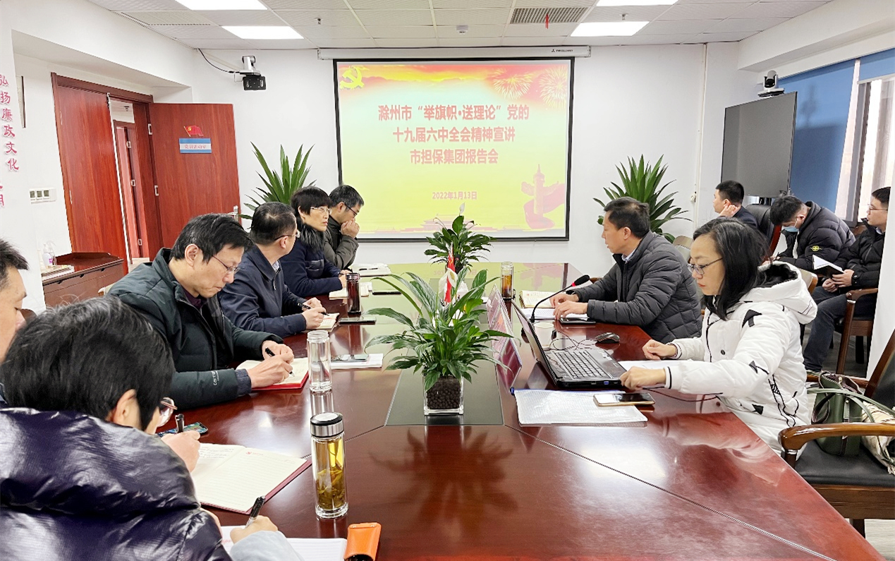 會議要求,一要提高站位抓學習,全體黨員干部職工要進一步提升思想認識、提高政治站位,把學習貫徹黨的十九屆六中全會精神作為當前和今后一個時期的重要政治任務,努力掌握思想精髓和精神實質,切實用以武裝頭腦、指導實踐、推動擔保工作。二要結合工作抓落實,把學習貫徹全會精神與做好業(yè)務工作結合起來、與黨史學習教育“我為群眾辦實事”實踐活動結合起來,努力把學習貫徹全會精神轉化為干事創(chuàng)業(yè)的強大動力,為新階段現(xiàn)代化新滁州建設新局面貢獻力量,以優(yōu)異成績迎接黨的二十大勝利召開。
