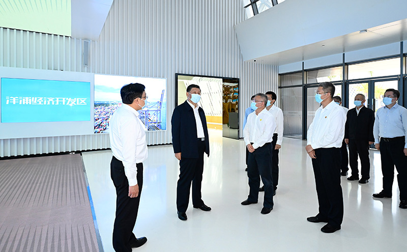 隨后,習(xí)近平來到洋浦國際集裝箱碼頭小鏟灘港區(qū),了解港口建設(shè)發(fā)展情況,同現(xiàn)場(chǎng)作業(yè)人員、掛職干部代表等親切交流。習(xí)近平強(qiáng)調(diào),振興港口、發(fā)展運(yùn)輸業(yè),要把握好定位,增強(qiáng)適配性,堅(jiān)持綠色發(fā)展、生態(tài)優(yōu)先,推動(dòng)港口發(fā)展同洋浦經(jīng)濟(jì)開發(fā)區(qū)、自由貿(mào)易港建設(shè)相得益彰、互促共進(jìn),更好服務(wù)建設(shè)西部陸海新通道、共建“一帶一路”。他指出,黨中央選派干部來自由貿(mào)易港掛職,既體現(xiàn)了黨中央對(duì)自由貿(mào)易港建設(shè)的關(guān)心和支持,也是對(duì)干部的培養(yǎng)鍛煉,要發(fā)揮掛職干部的積極作用,讓他們?cè)诨鶎右痪€增長(zhǎng)才干。