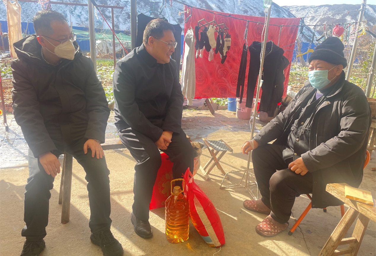 張健一行在村兩委和駐村工作隊的陪同下,采取入戶慰問方式走訪了多戶困難家庭,與黨員群眾促膝交談,詳細(xì)了解他們的生產(chǎn)生活身體情況、困難訴求以及對村兩委、駐村工作隊的意見和建議,積極幫助協(xié)調(diào)解決實際需求,祝福他們在新的一年把日子過得越來越好。